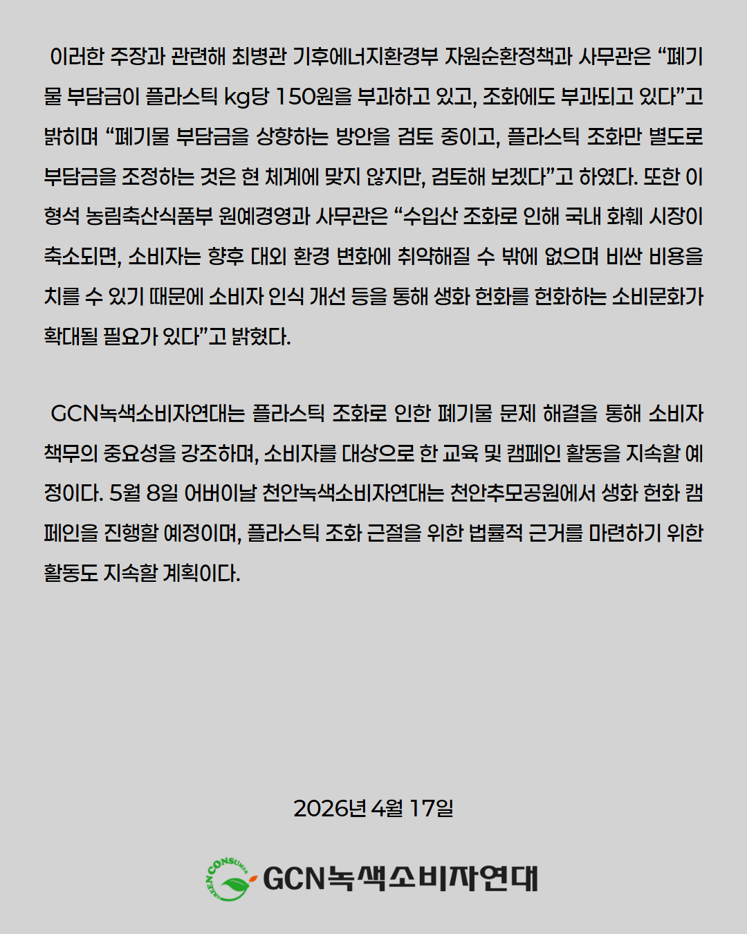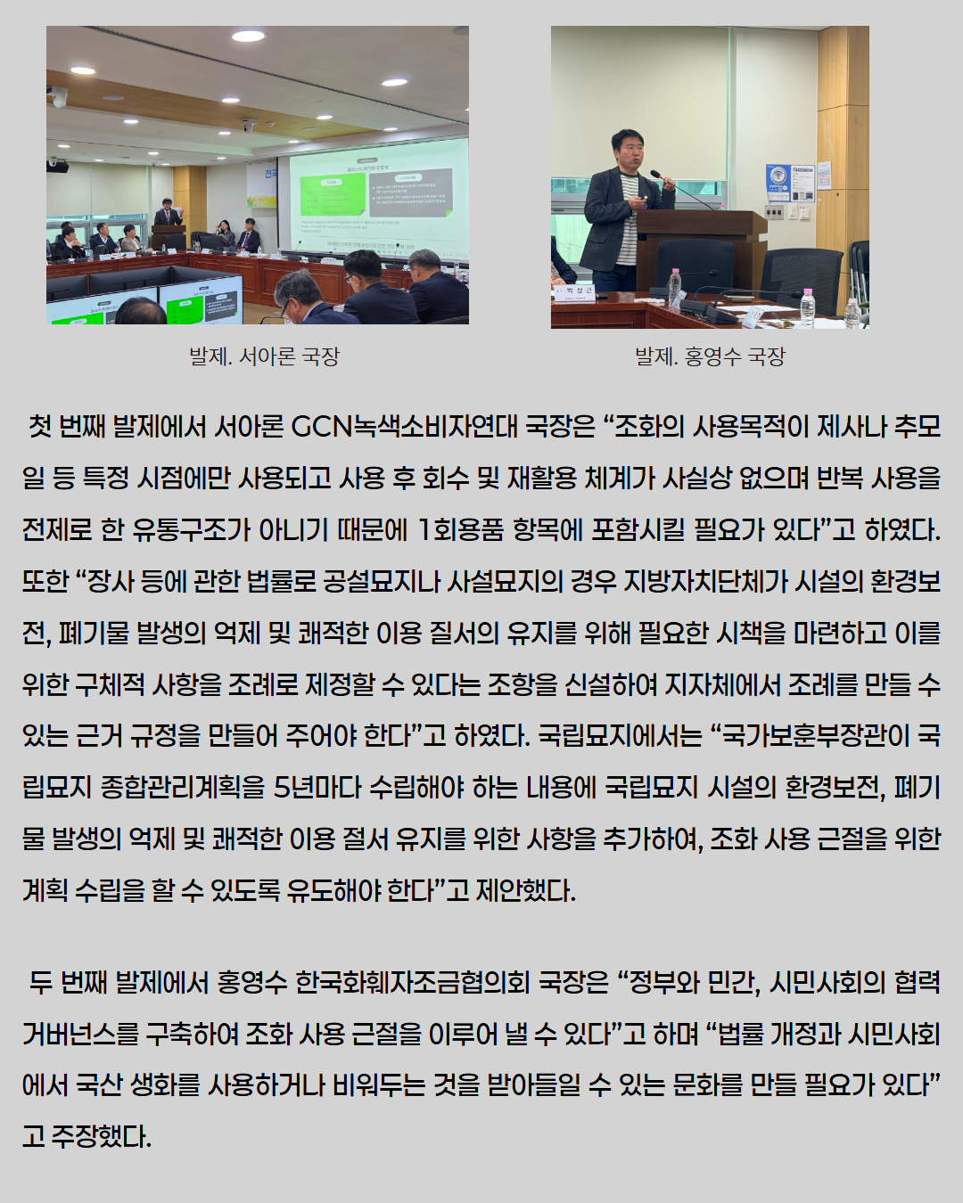 [보도자료] 전국 공원묘원 플라스틱 조화 문제 해결을 위한 국회토론회 개최