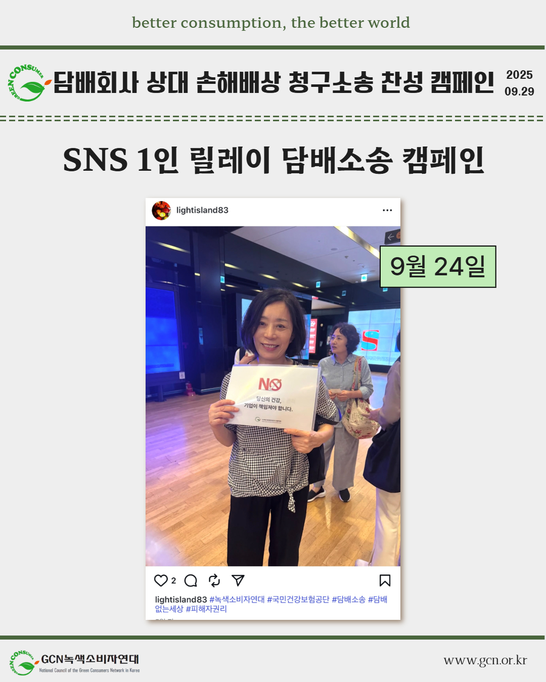 벌써 3주차에 접어든 1인 릴레이 담배소송 캠페인! 2주차 인증을 공유합니다!