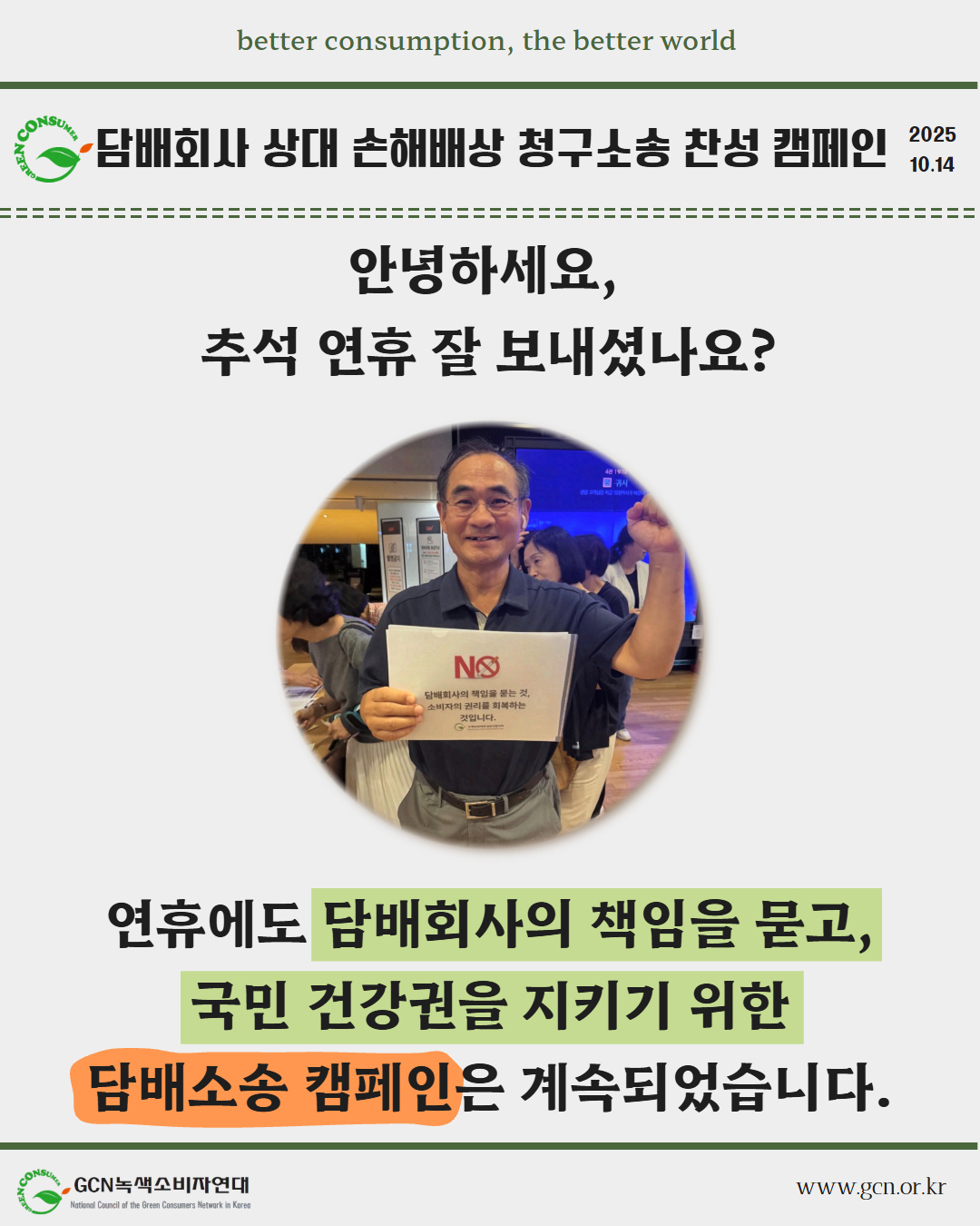 #GCN #녹소연 #녹색소비자연대 #담배소송 #손해배상청구소송 #국민건강보험공단 #국민건강 #국민건강권 |