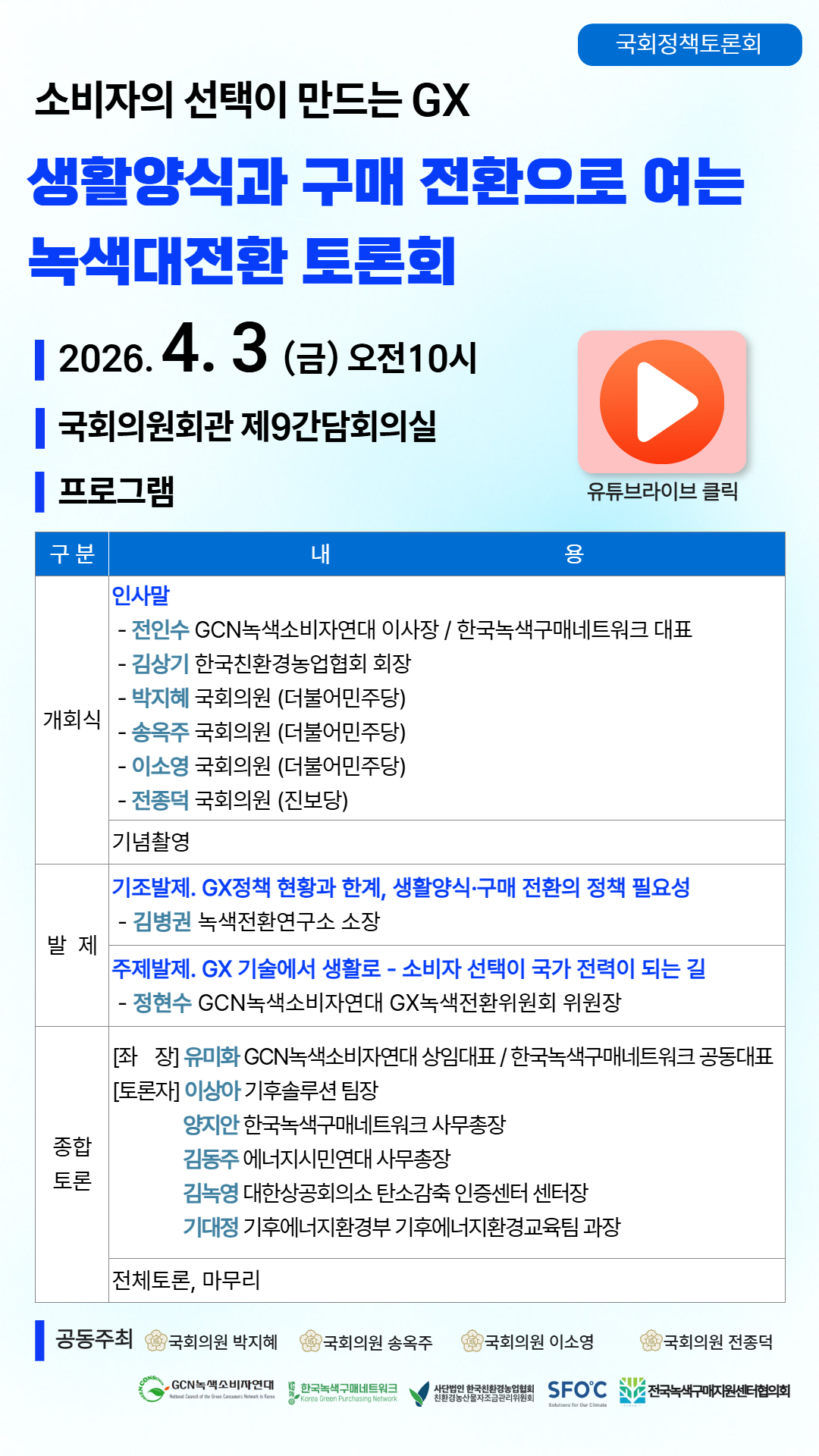 소비자의 선택이 만드는 GX, 생활양식과 구매 전환으로 여는 녹색대전환 토론회