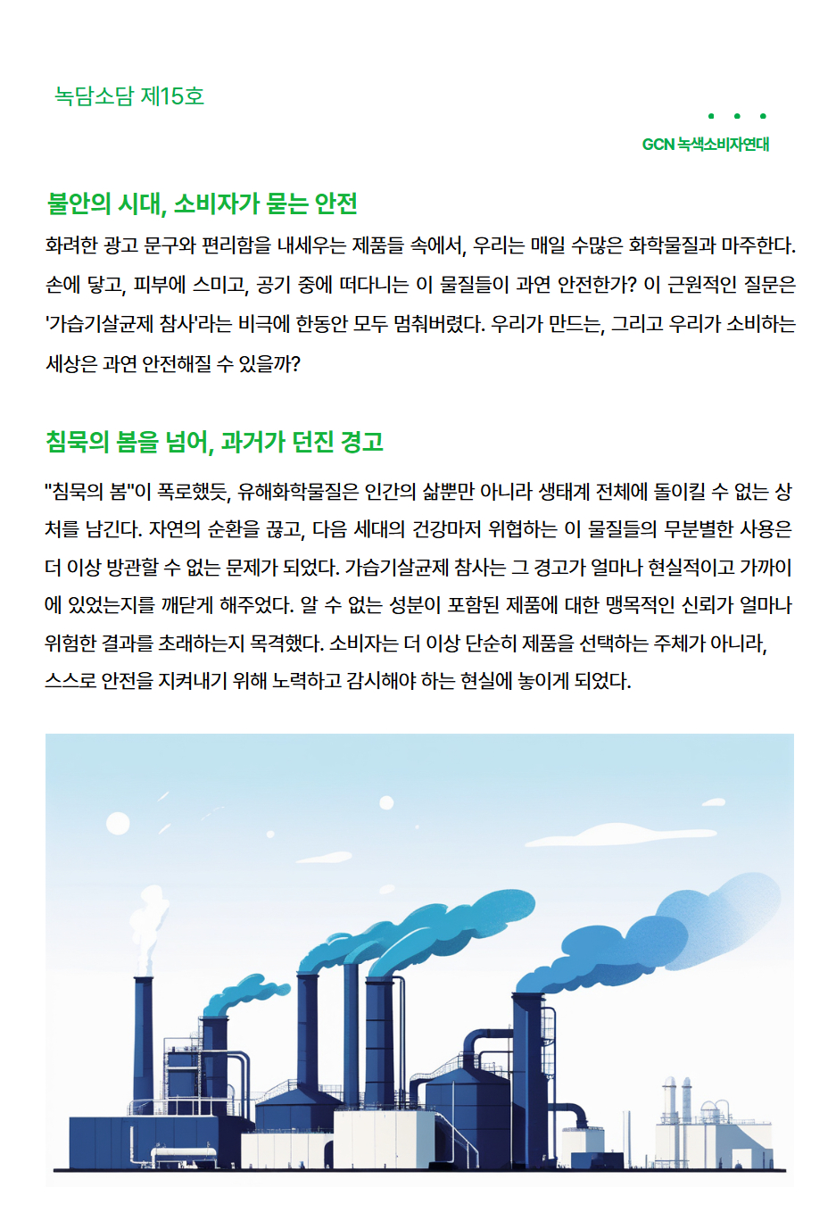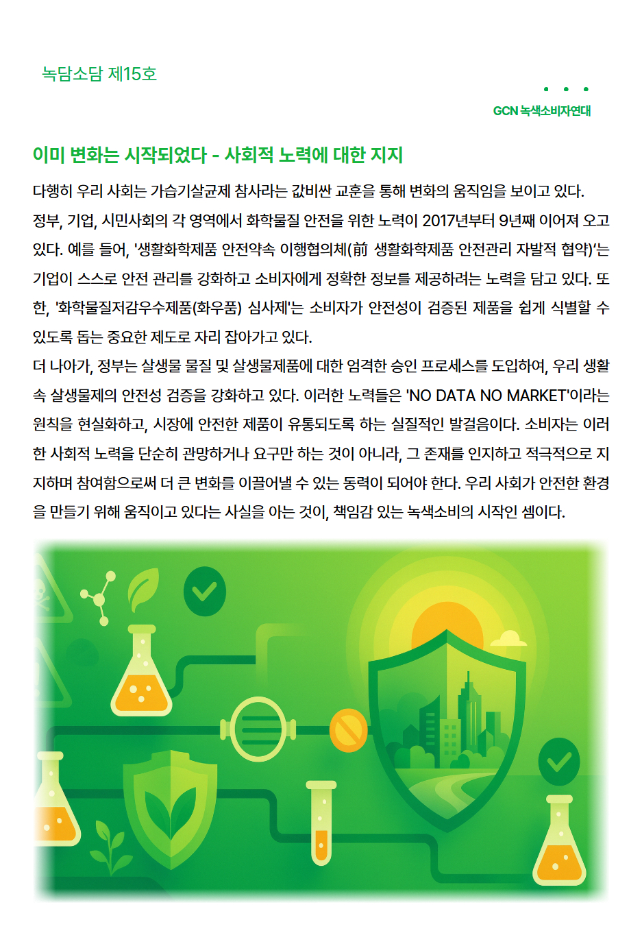 [녹담소담 제15호] 불안을 넘어 희망으로. 안전한 화학물질 관리, 소비자는 바란다.