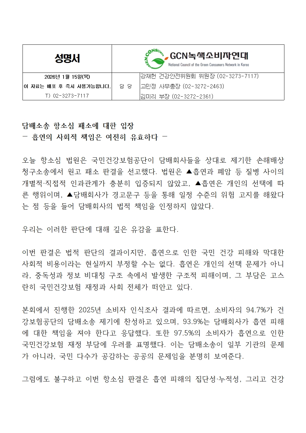 (성명서)담배소송 패소_녹색소비자연대.hwp