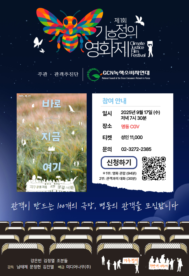 9월 17일(수) 저녁 7시 30분, 명동 CGV에서 열리는 제1회 기후정의영화제에 함께할 관객을 모집합니다.
