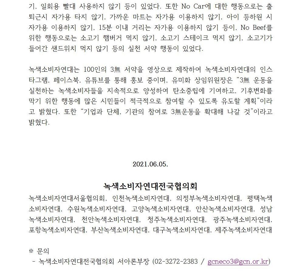 녹색소비자연대 환경의 날 100명의 3無 행동 서약 진행!