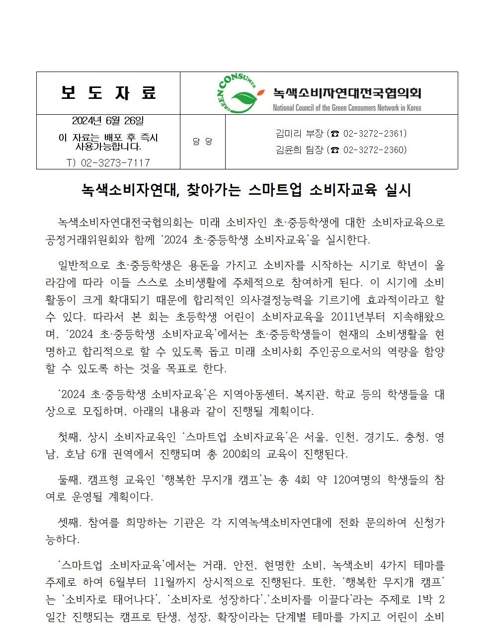 [보도자료]녹색소비자연대, 찾아가는 스마트업 소비자교육 실시