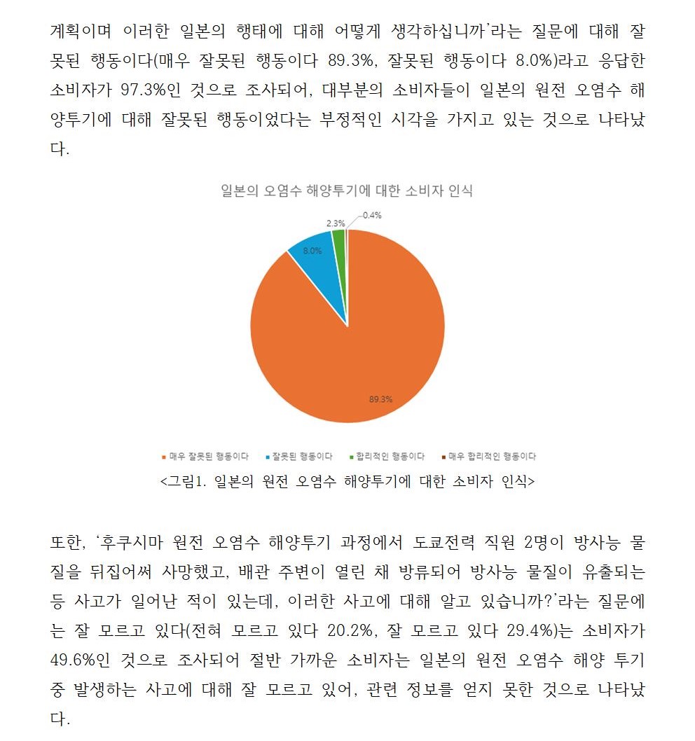 [보도자료] 소비자 55.7% 일본산 수산가공품에 후쿠시마 수산품 포함 몰라