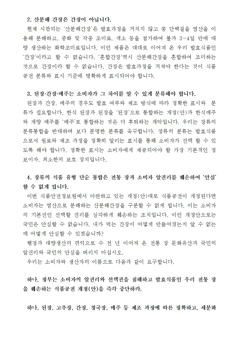[보도자료] 장류 식품공전 개정안에 반대한다!