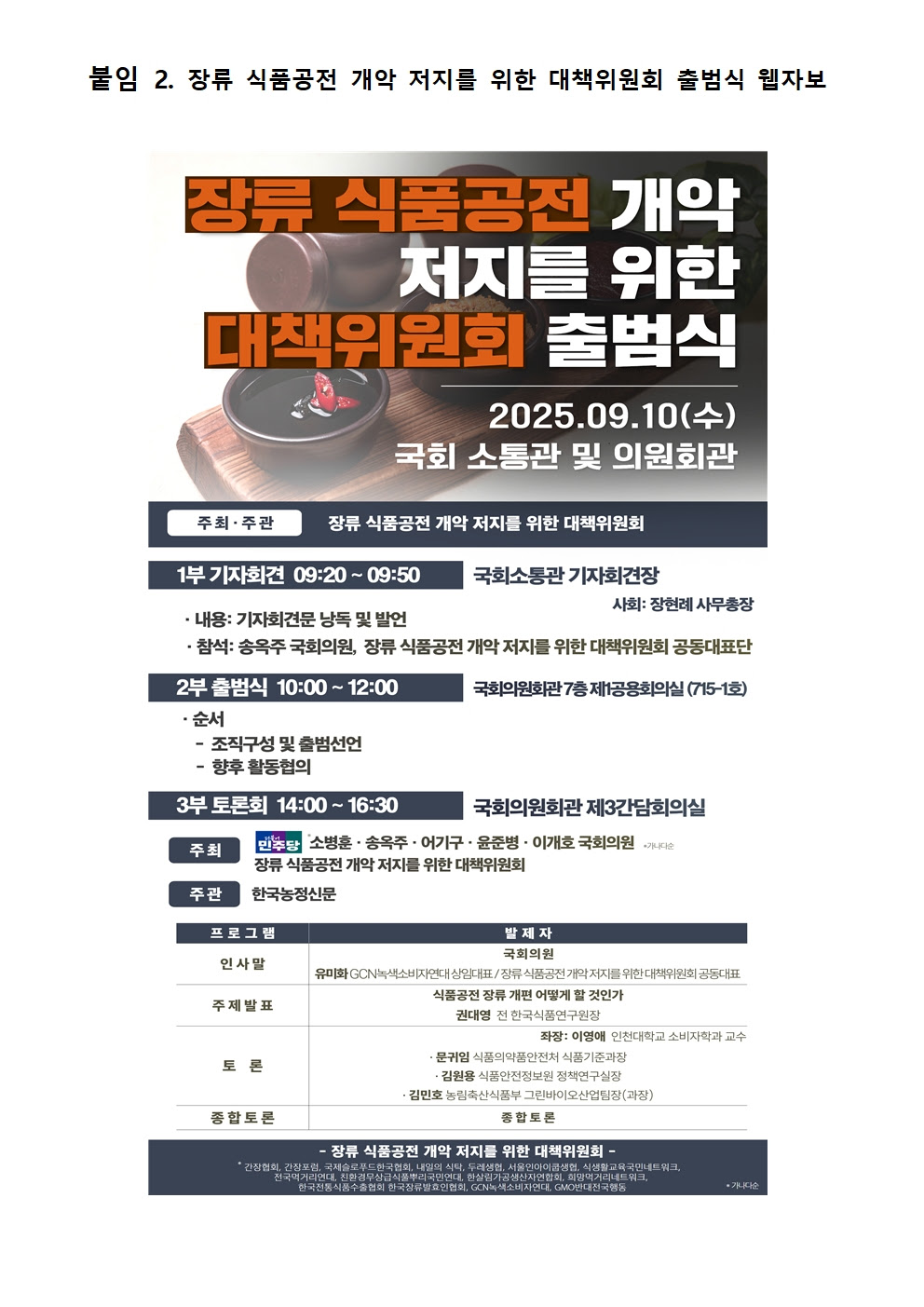 [녹색소비자연대]장류 식품공전 개악 저지를 위한 대책위원회_보도자료_250910.hwp
