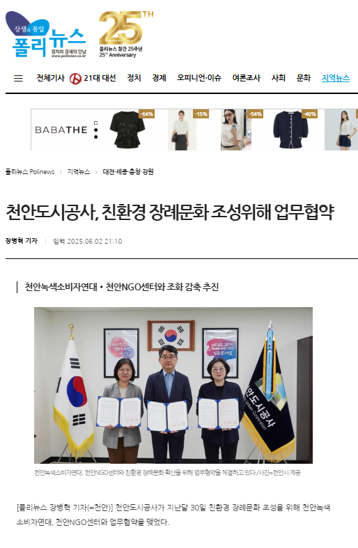 천안도시공사, 친환경 장례문화 조성위해 업무협약 (폴리뉴스)