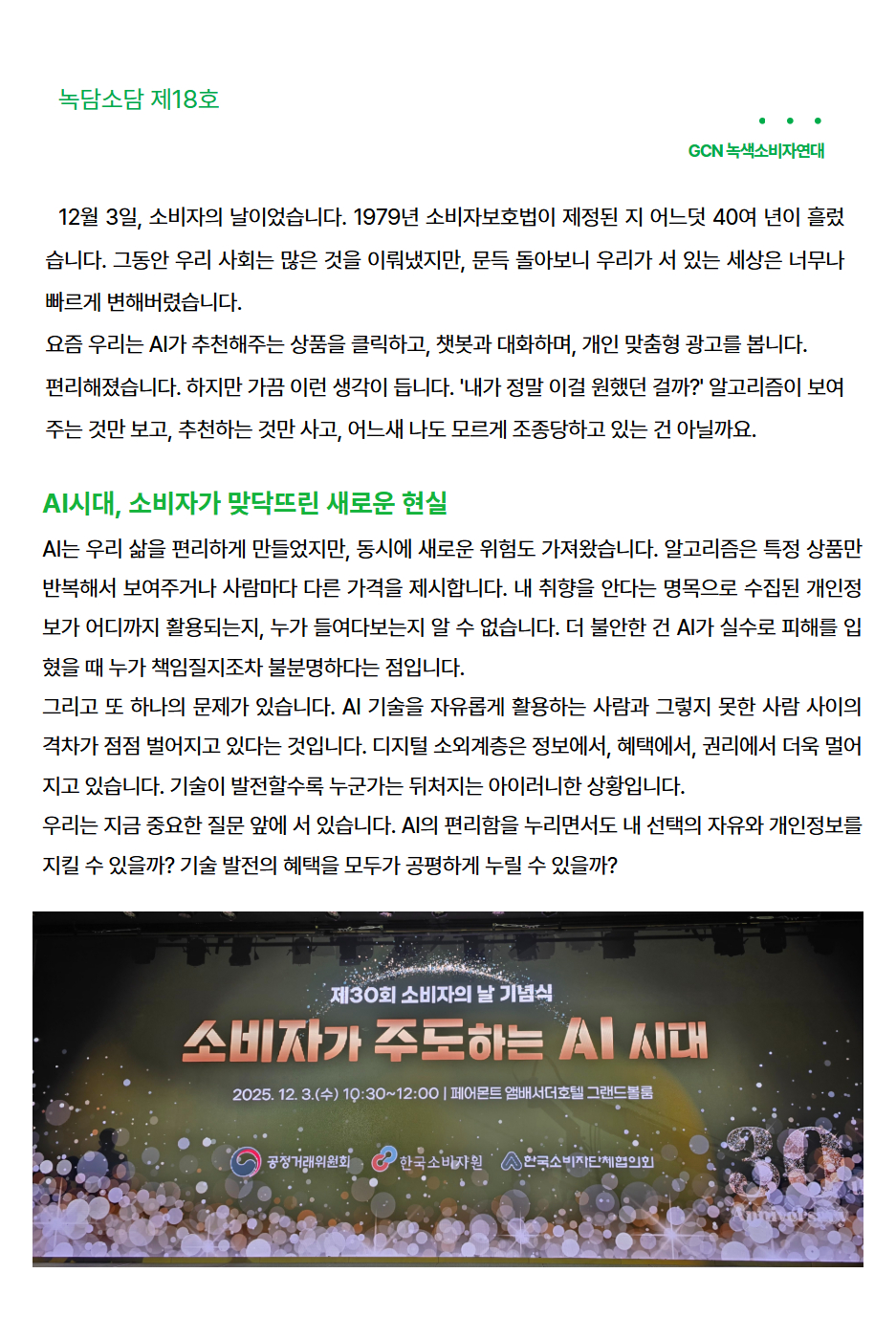 [녹담소담 제18호] 소비자의 날, 그리고 우리의 선택