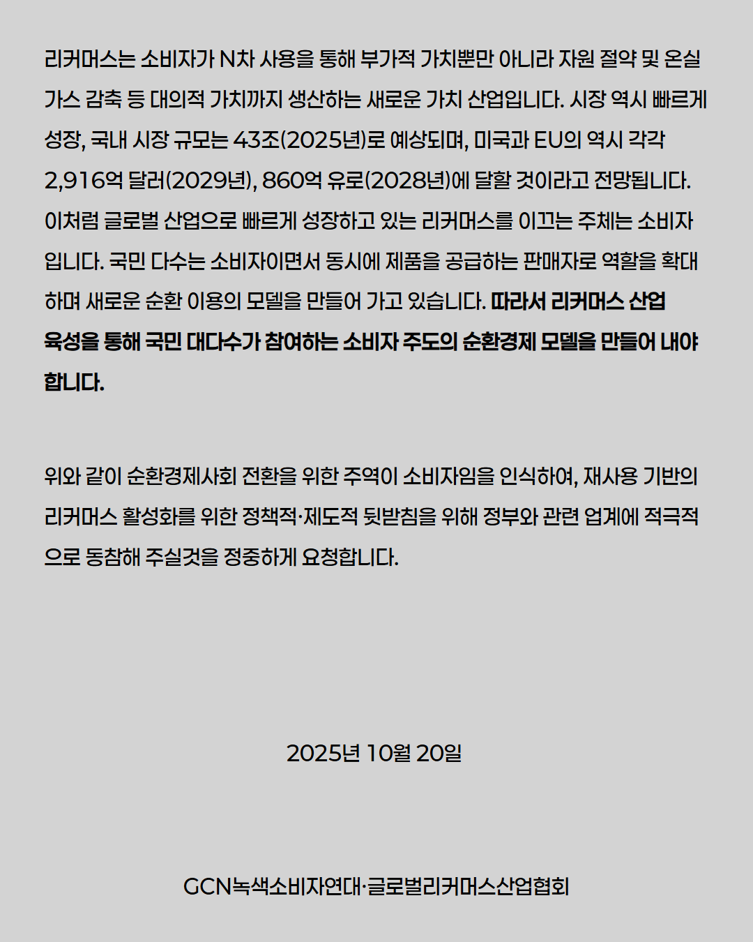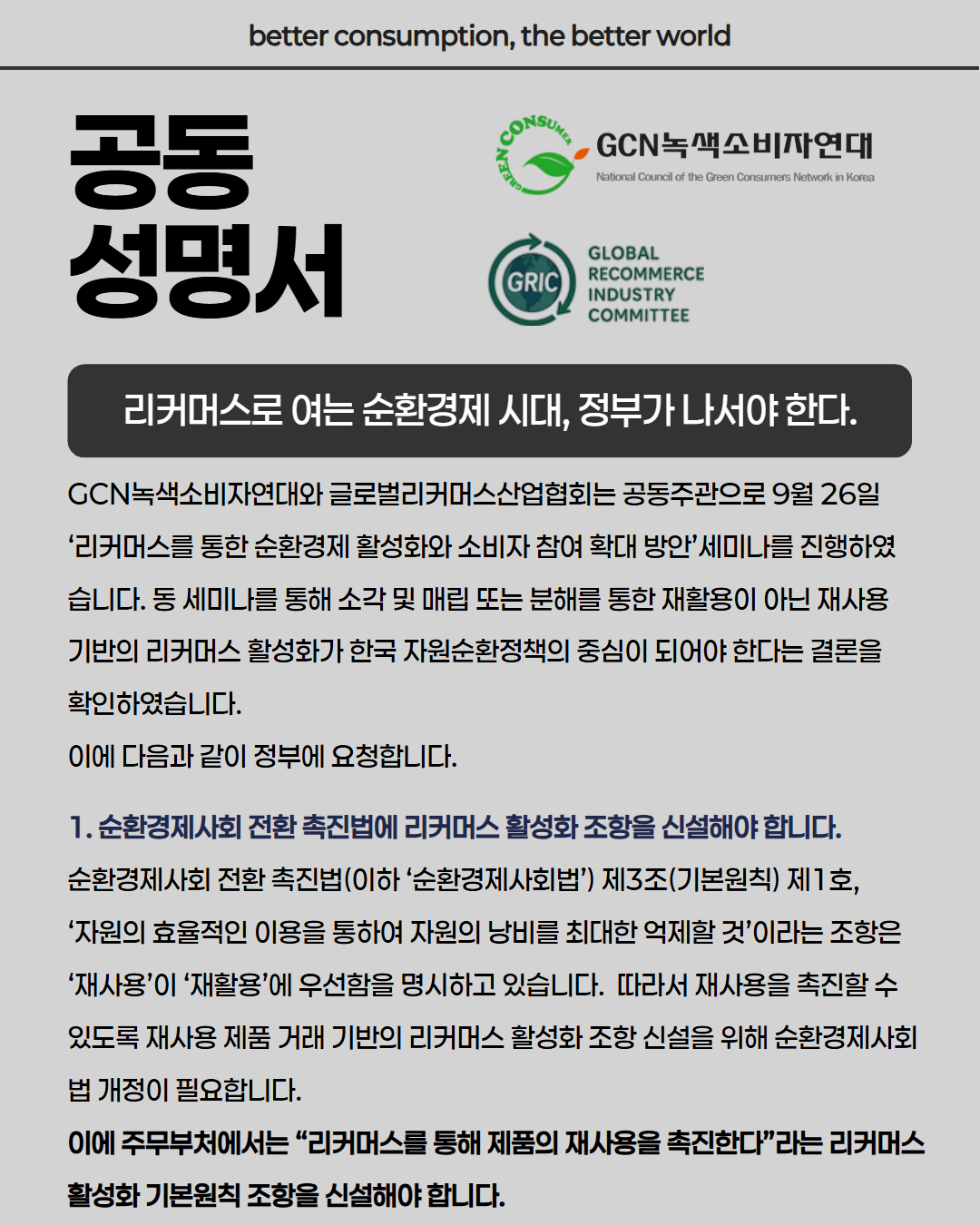 (공동성명서) 리커머스로 여는 순환경제 시대, 정부가 나서야 한다.