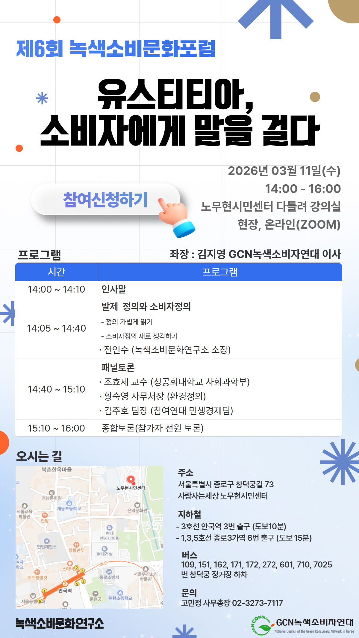 GCN녹색소비자연대 제6회 녹색소비문화포럼 '유스티티아, 소비자에게 말을 걸다' 개최