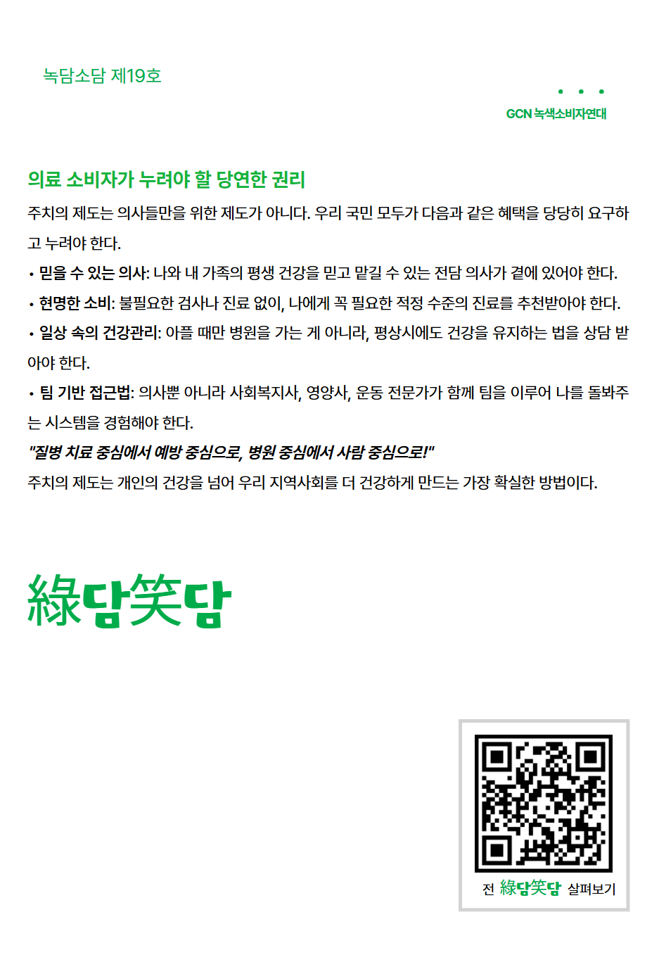 [녹담소담 제19호] 건강한 소비자를 위한 '주치의 제도' 이야기