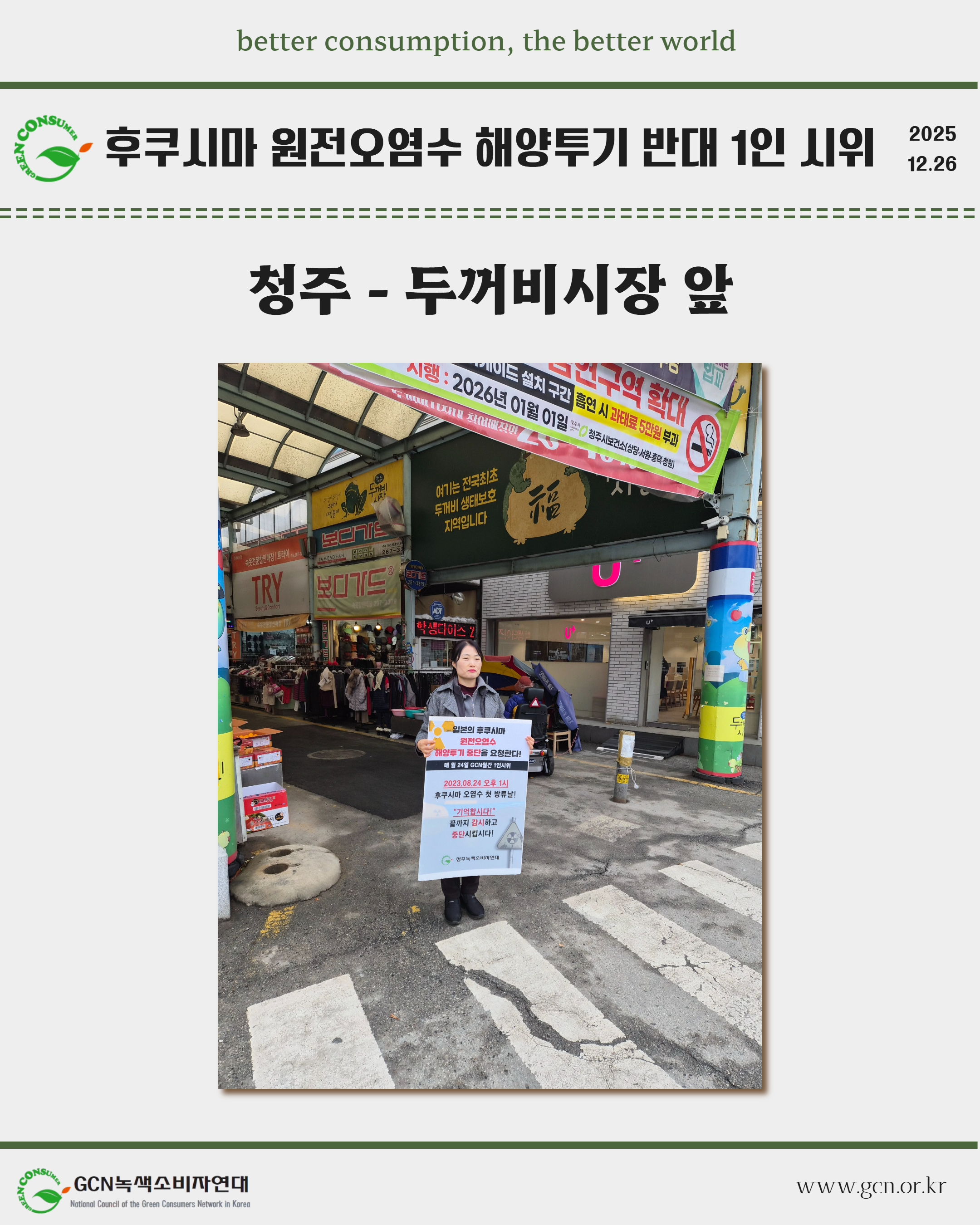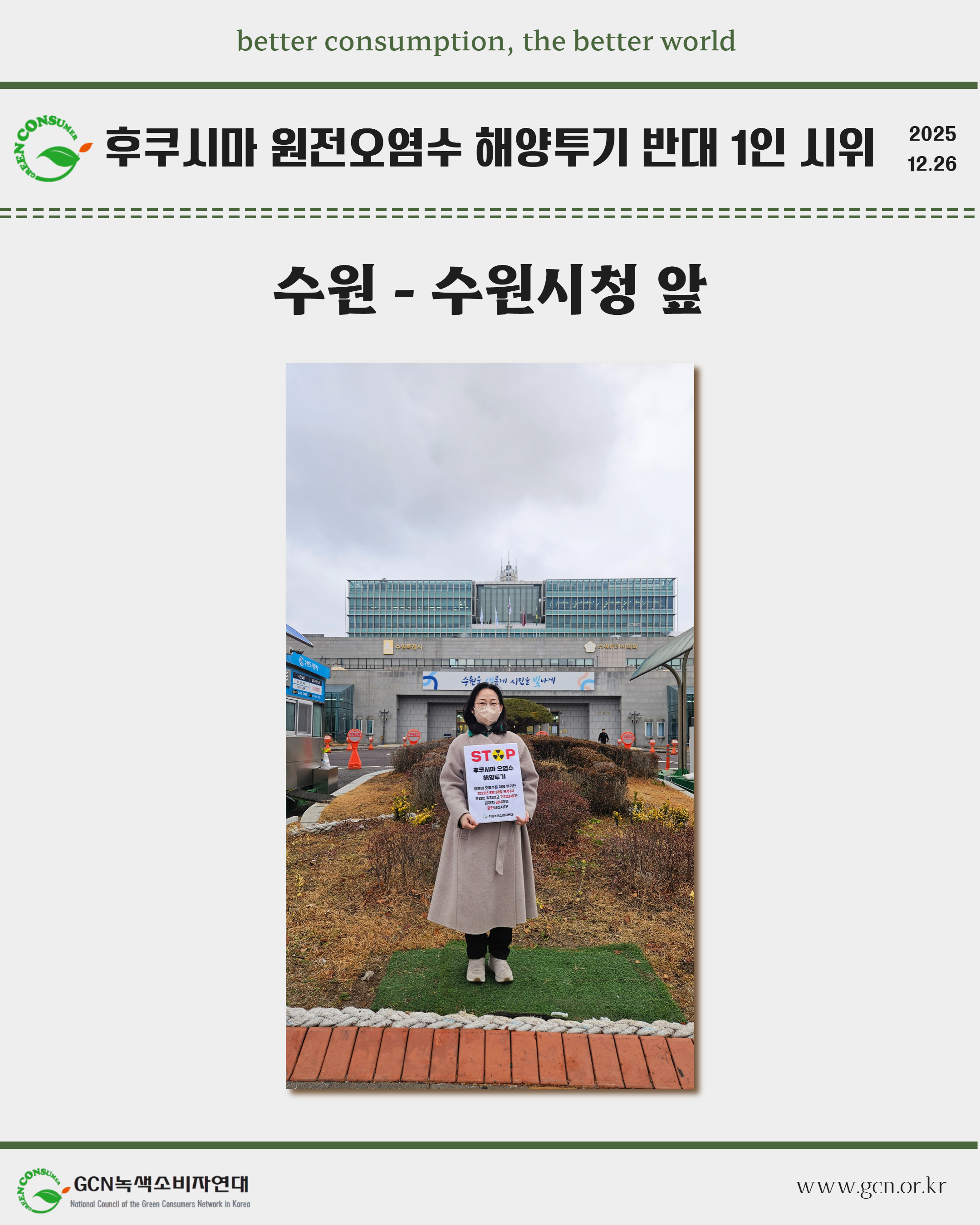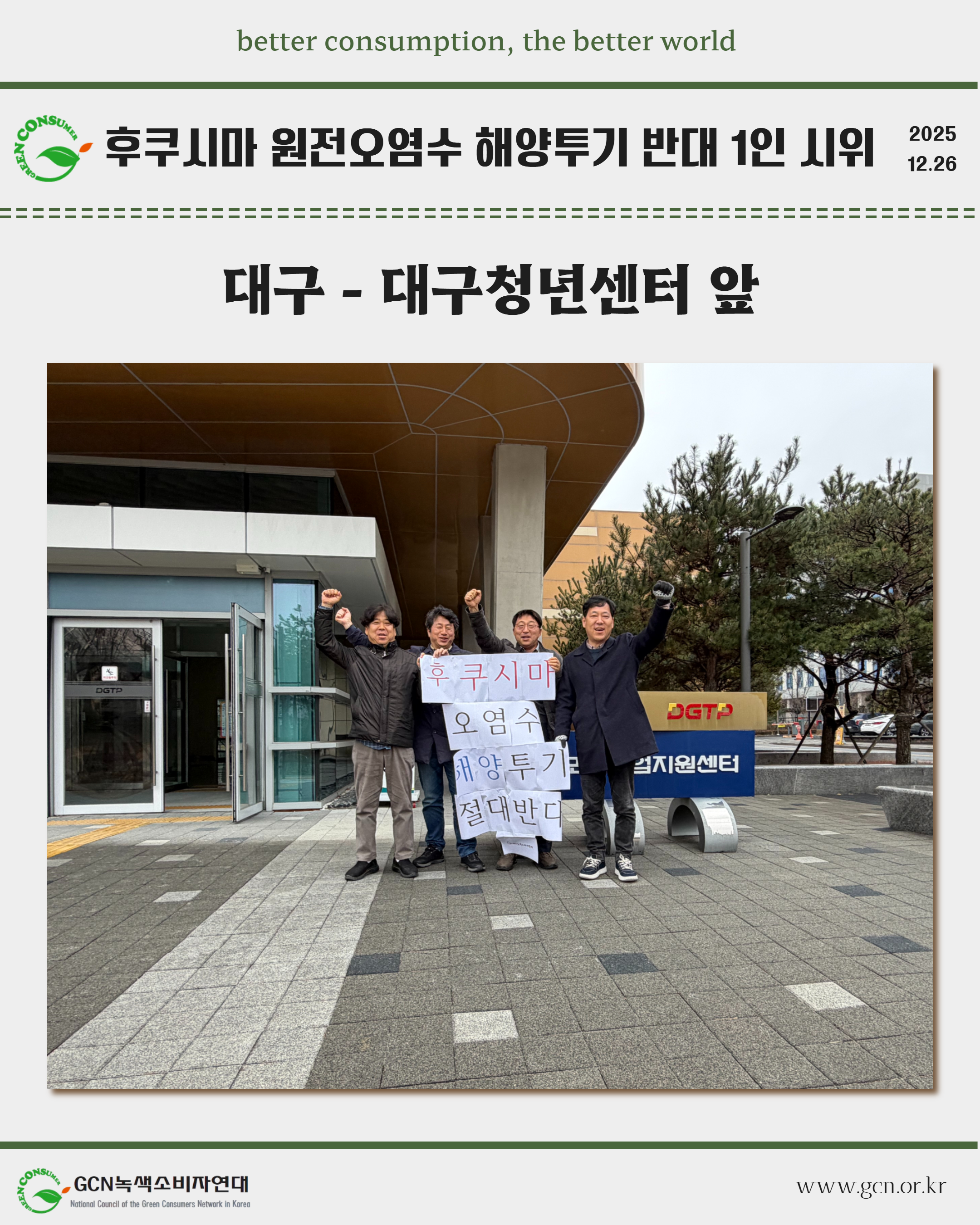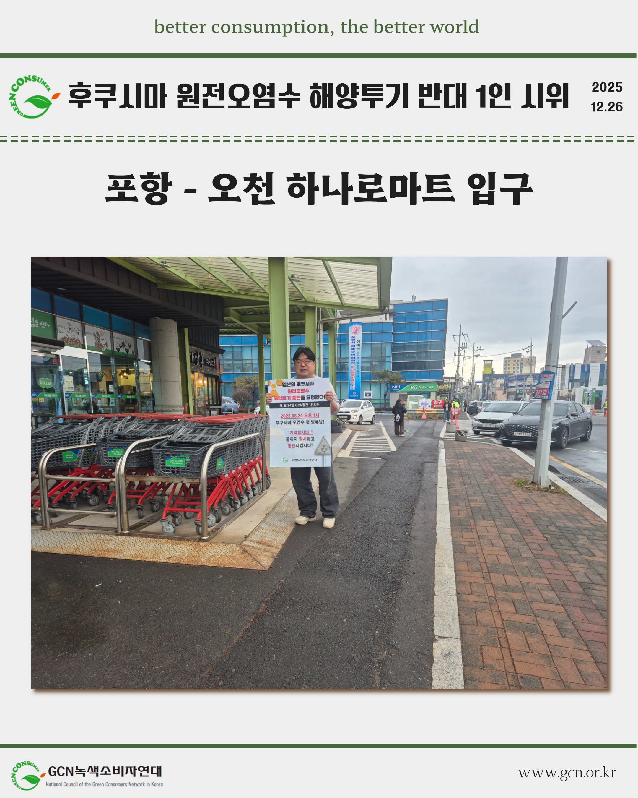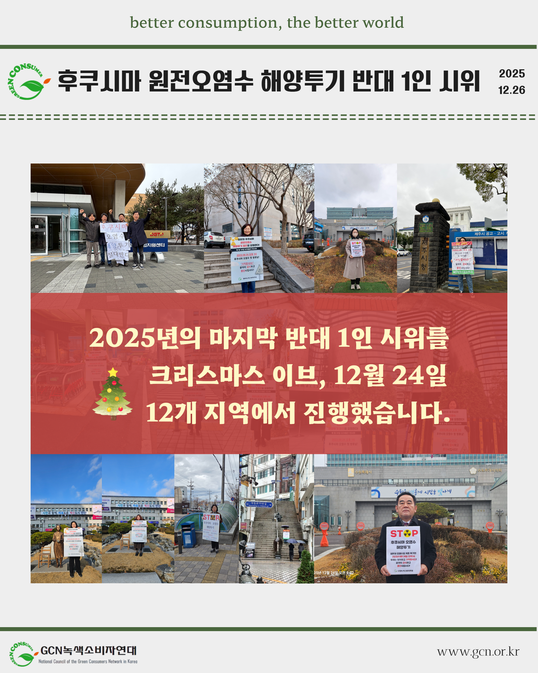 일본이 원전오염수 해양 투기를 시작했던 2023년 8월 24일을 잊지 않고, GCN 녹색소비자연대는 매월 24일 전국에서 1인 시위를 이어가고 있습니다.