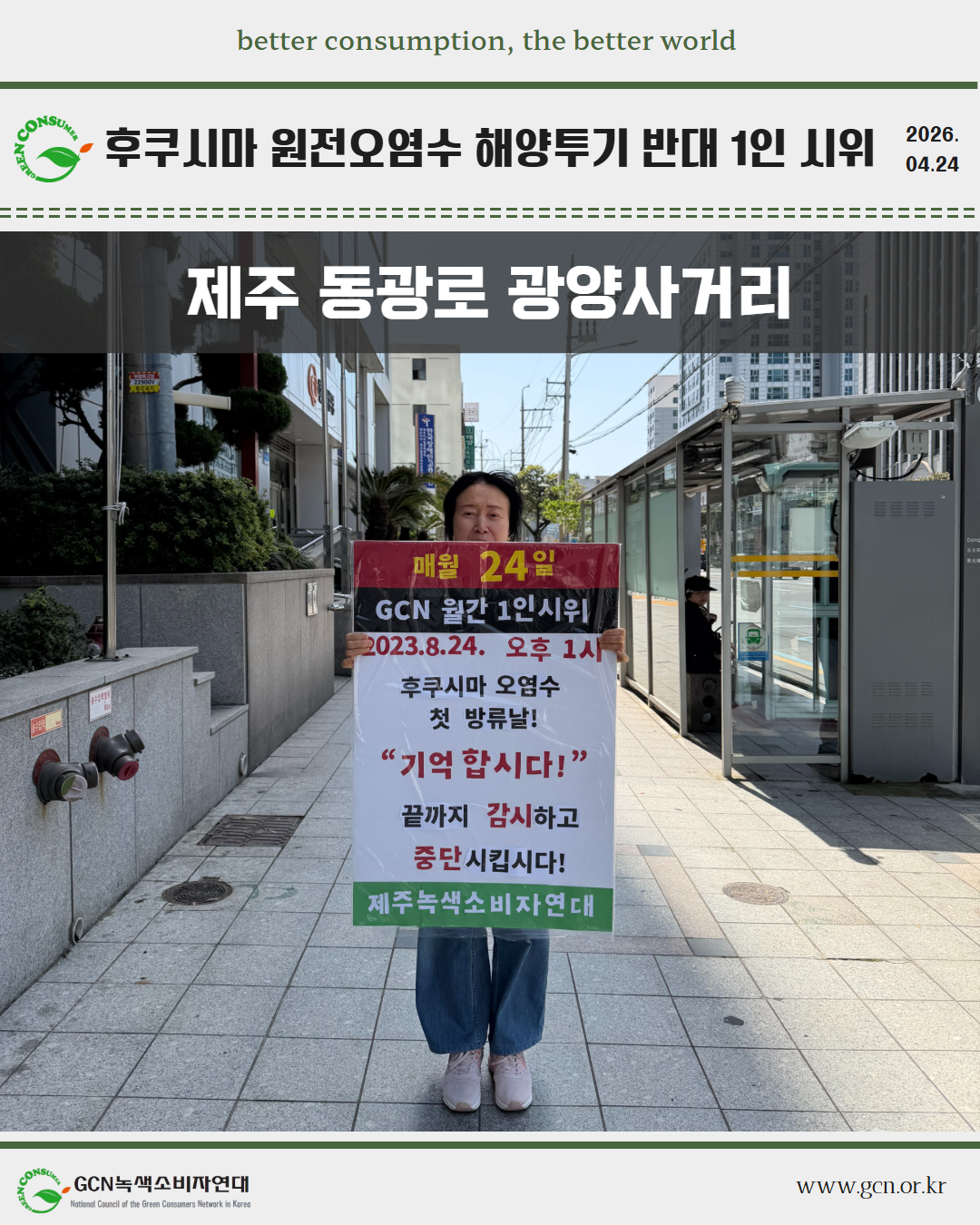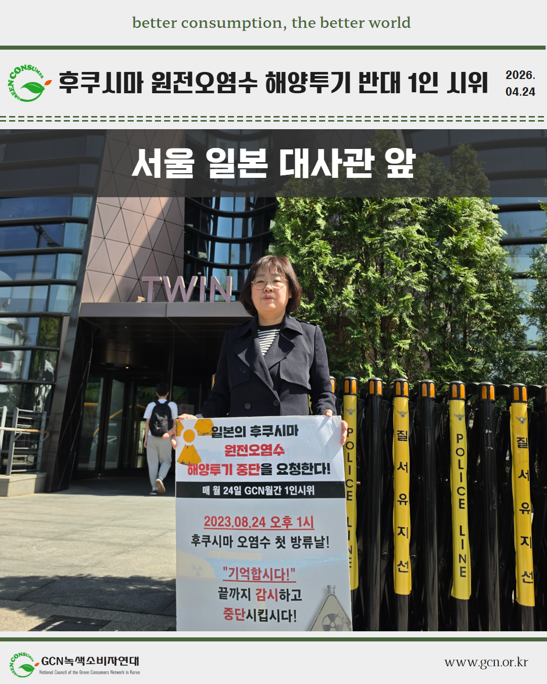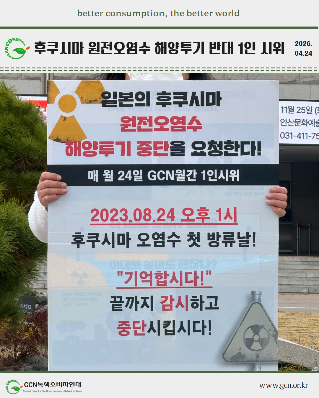 2026년 4월 후쿠시마 원전오염수 해양투기 반대 1인시위