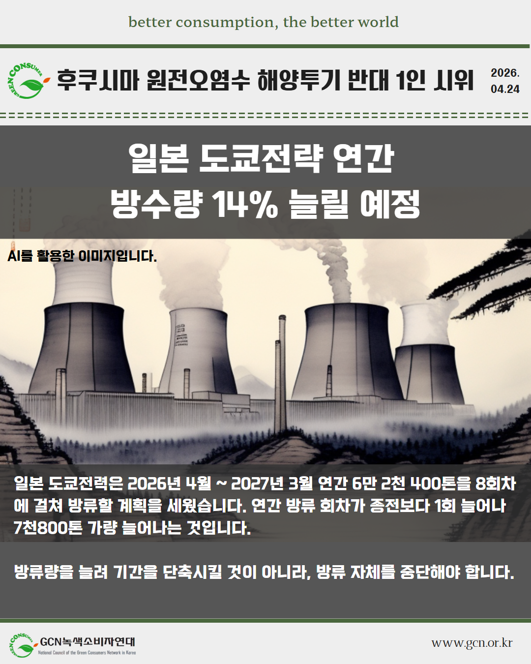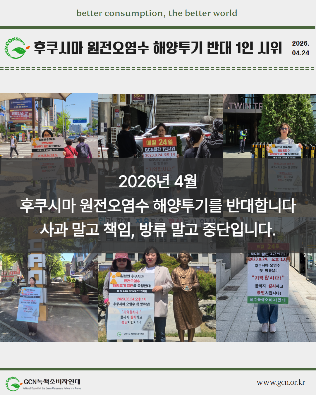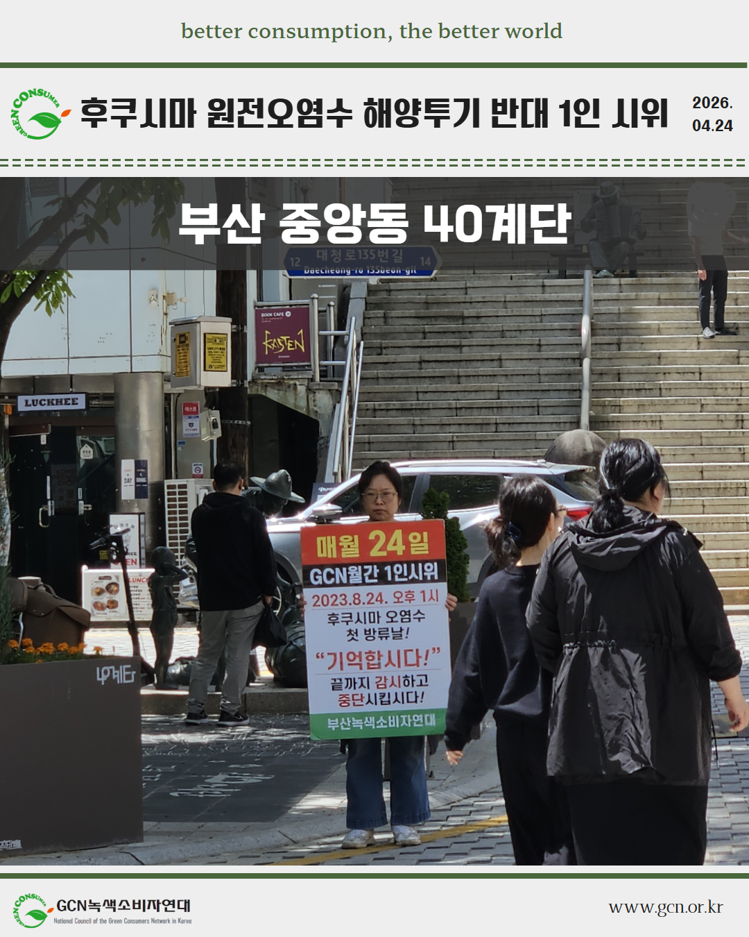 2026년 4월 후쿠시마 원전오염수 해양투기 반대 1인시위