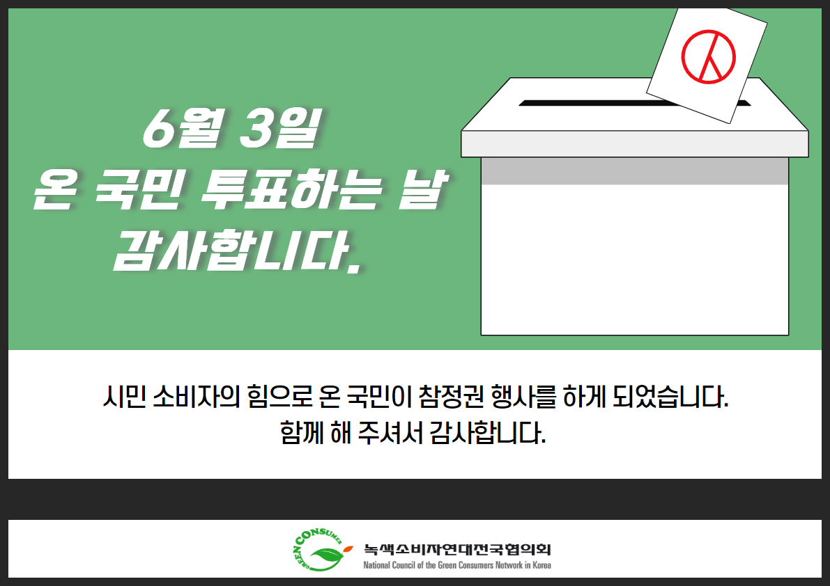 #녹소연 #녹색소비자연대 #택배 #택배과로사 #택배휴무 #참정권 #6월3일 #대통령선거 #대선 #참정권